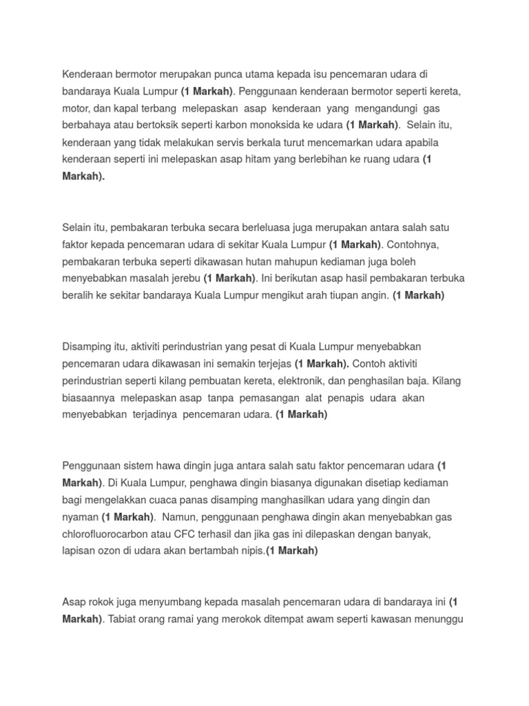 Kenderaan Bermotor Merupakan Punca Utama Kepada Isu Pencemaran Udara Di Bandaraya Kuala Lumpur Pdf